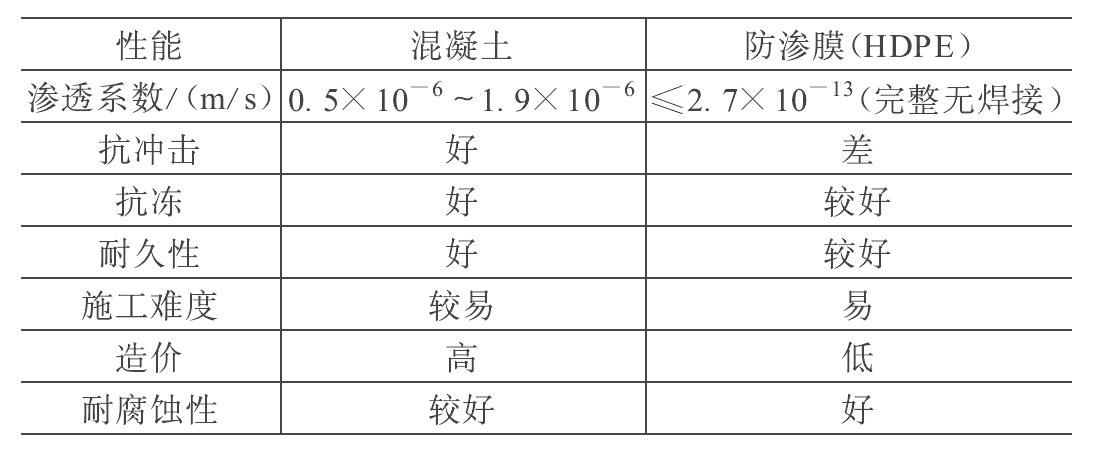 采用混凝土防渗的优点在于抗冲性、抗冻性、耐久性,适用于流速比较大的渠道防渗,而土工膜在用于流速较大的渠道时,还必须做好保护层,增加造价和施工难度。采用高密度聚乙烯(HDPE)土工膜防渗的优点在于高防渗性、低造价。