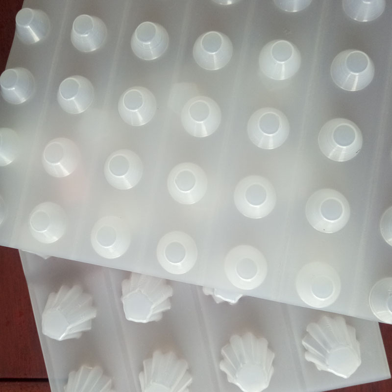 塑料排水板分卷材及片材二个系列,造型上采用特殊工艺将塑料板材压出封闭凸起的柱状壳体,形成凹凸状膜,壳连续,具有立体空间和一定支撑高度,边沿加工生产时热粘上丁基橡胶条,壳顶部覆盖土工布过滤层,用于渗水、疏水、排水和蓄水的产品。又称为:搭接粘胶排水板、排疏板、排水保护板、滤水板、塑料凹凸排水板、塑料夹层板。产品规格分为广场绿化用和地下室用,有H20、H25规格供选用。