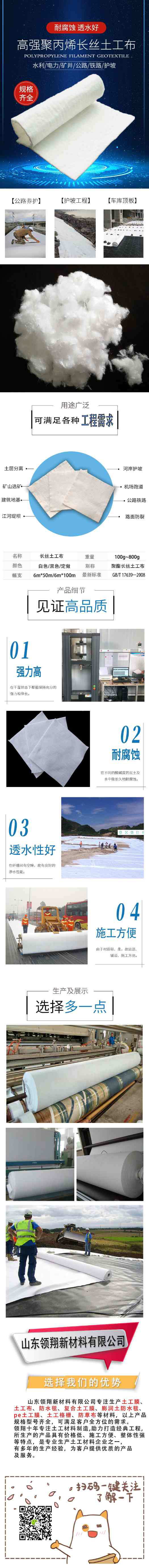 聚丙烯纤维非织造土工布强度较高,耐酸碱性好、耐磨性好,耐腐蚀、耐霉变,耐低温,具有较好的芯吸效应和渗水性能,且比重轻,价格便宜,使得聚丙烯非织造土工布在土木工程领域。